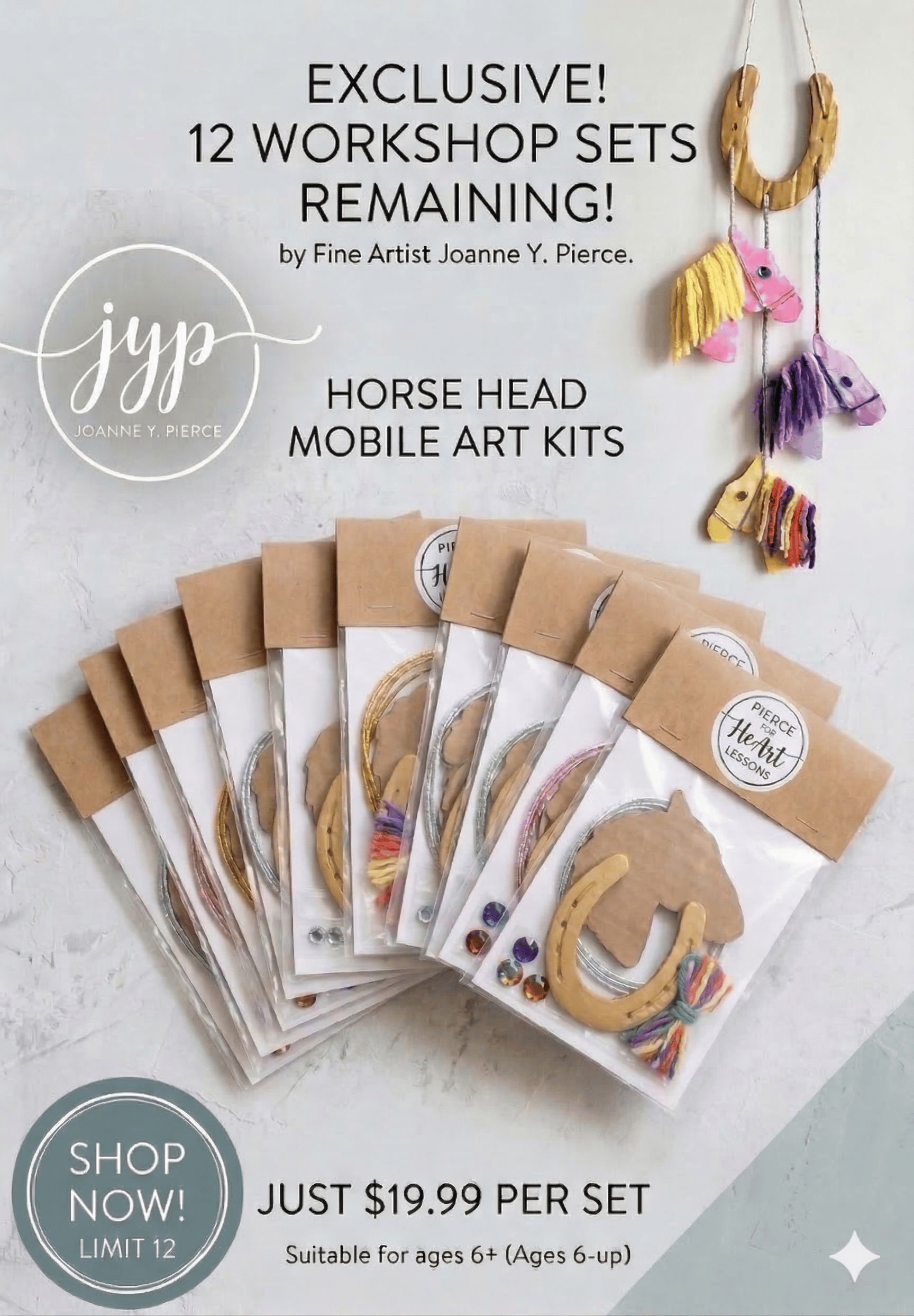 There is an exclusive batch remaining of only 12 Horse Head Mobile Art Kits that the workshop children created. Once these 12 are gone, they're gone!